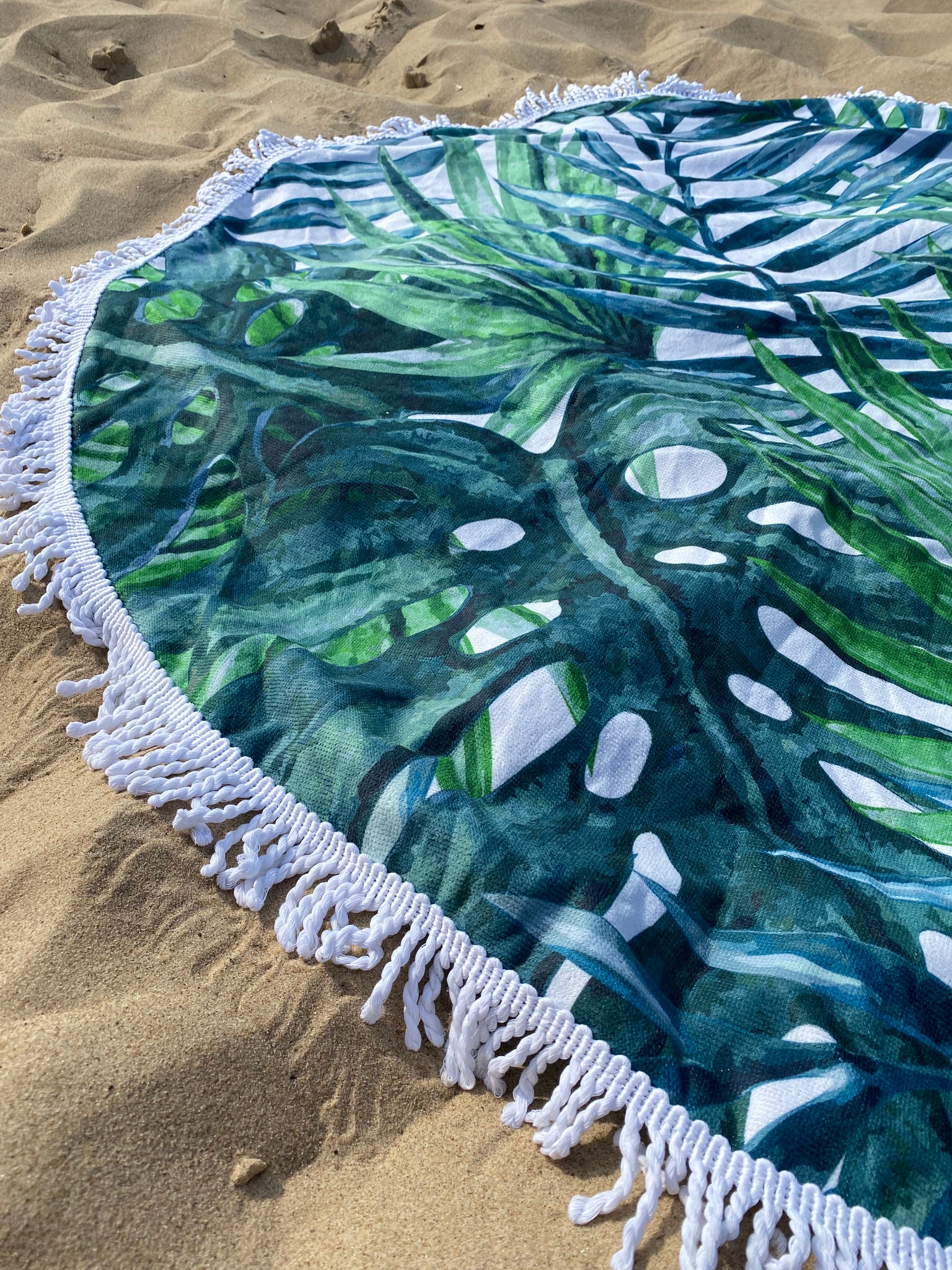 Designed oversized for extra space and comfort, this round towel is perfect for sunbathing, lounging, or sharing.